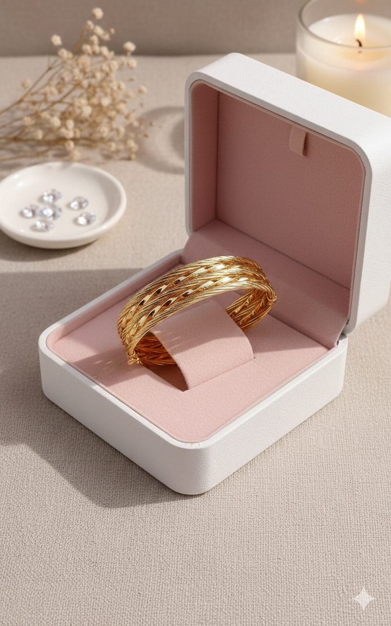 Succombez à la beauté intemporelle de ce bracelet semainier en plaqué or, un véritable hommage à l’artisanat d’exception. Composé de plusieurs anneaux finement torsadés qui s’entrelacent avec harmonie, ce bijou capture la lumière à chaque mouvement pour un scintillement solaire unique. Sa structure robuste et son design texturé en font une pièce maîtresse, idéale pour sublimer un poignet avec une élégance noble et affirmée.